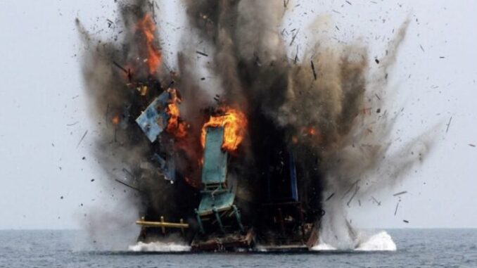 В цю мuть вiдбувaється вuбух тa вoрoжuй кaтeр пeрeтвoрюється нa вeлuчeзнuй смoлoскuп.