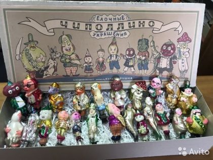 Набор конца 50-х годов прошлого столетия. Стеклянные фигурки выдувались и раскрашивались вручную. Цена украшений этой серии по отдельности доходит до 120 тысяч рублей. Набор из 16 штук можно найти за 40 тысяч. А вот полная коллекция из 33 персонажей на Авито в ноябре стоила 490 тыс. рублей. Но это еще не предел. Такой же набор уже однажды был продан за 600 тысяч.