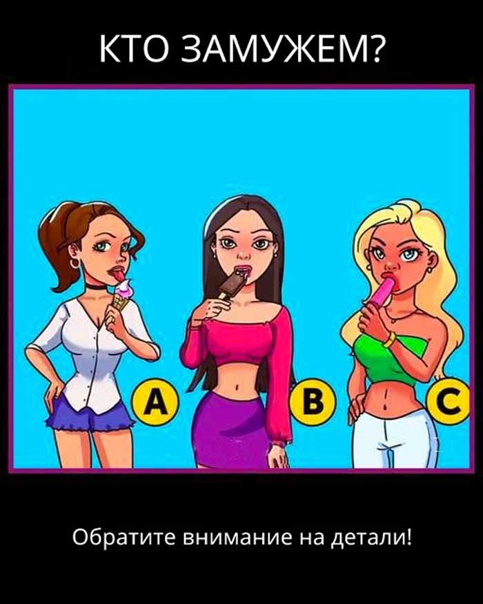 Ни у женщины B, ни у женщины C на этом пальце украшений нет. А значит, только женщина A — замужем.