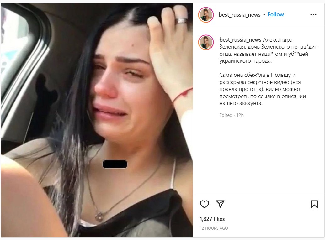 В российских социальных распространяется информация о том, что дочь президента Украины Александра Зеленская ненавидит своего отца и называет его нацистом и фашистом.