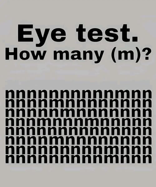 The internet is filled with visual puzzles and brain teasers, and one of the newest challenges to pay everyone’s attention is the “Eye Test” where participants are asked to notice the number of times the letter “m” appears in a grid filled with “n”s.