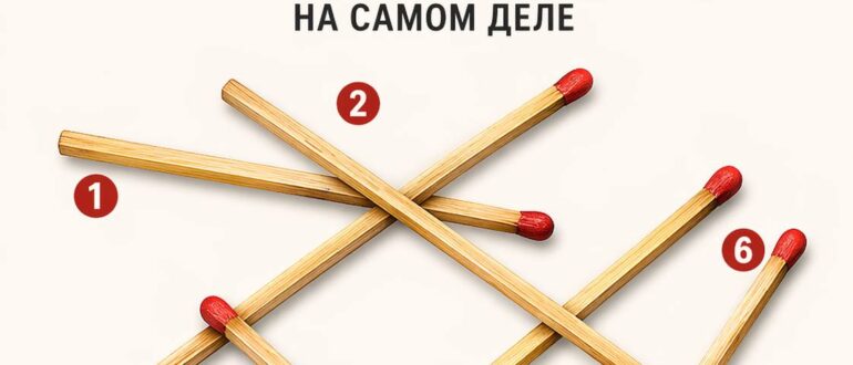 На первый взгляд это кажется обычной визуальной головоломкой — шесть разбросанных и частично наложенных друг на друга спичек, каждая из которых отмечена цифрой от 1 до 6.