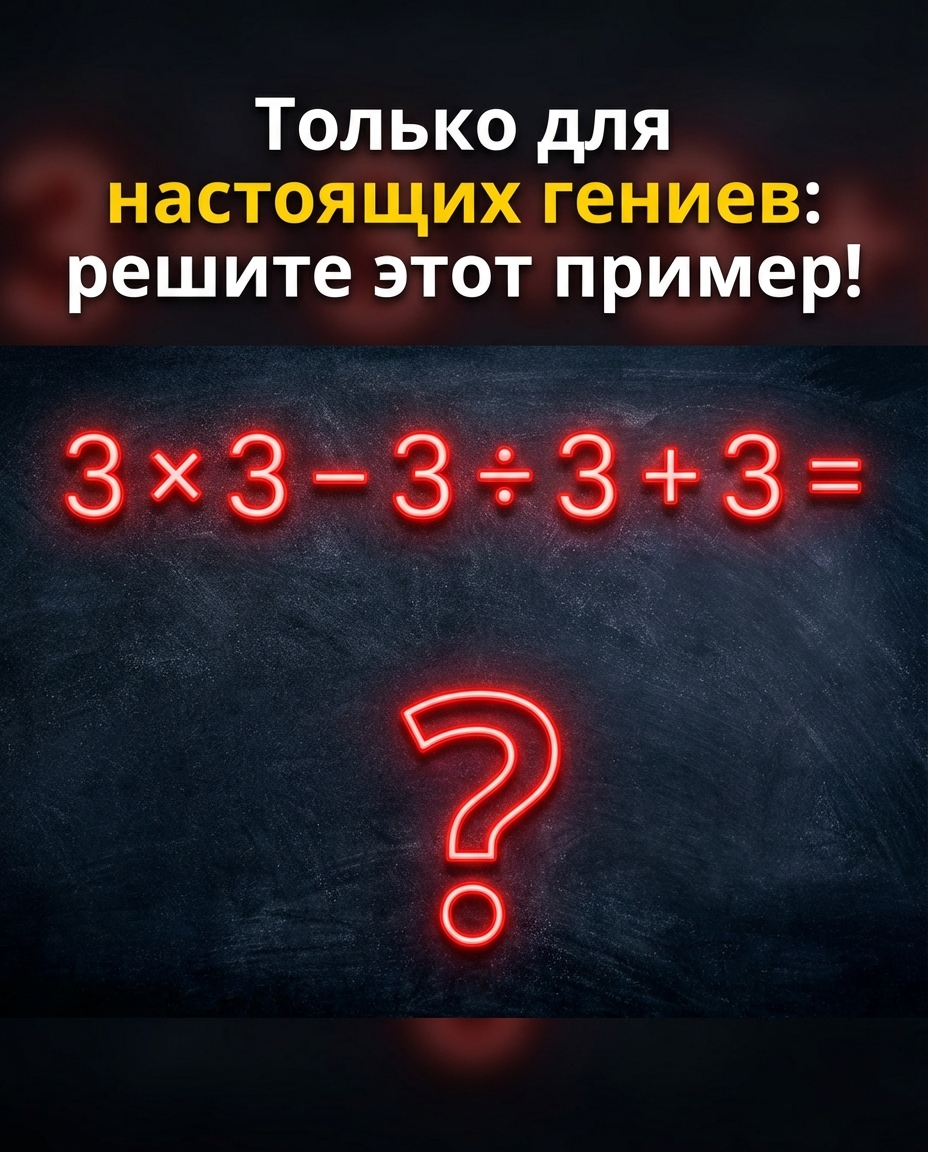 Проверьте свои навыки вычислений с этим на первый взгляд простым, но очень коварным примером. Сумеете ли вы правильно применить приоритет операций и получить верный результат? Эта математическая задача значительно хитрее, чем кажется!