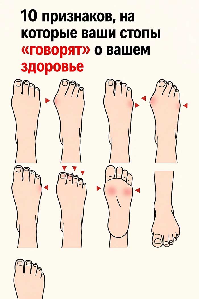 Ваши ноги — настоящие «барометры» здоровья! Они не просто носят вас каждый день, а ещё могут сигнализировать о скрытых проблемах в организме. Прислушайтесь к ним — иногда они кричат громче, чем мы думаем! Вот 10 важных признаков, на которые стоит обратить внимание, чтобы сохранить здоровье стоп и всего тела.