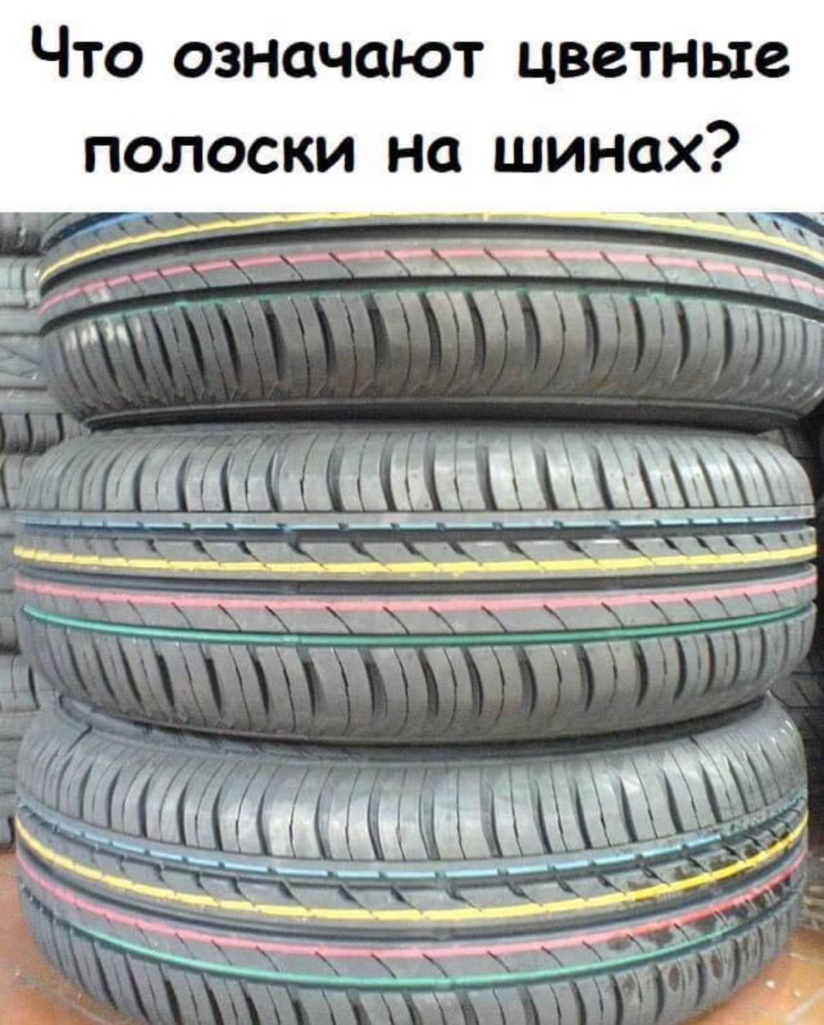 Хотя эта маркировка явно не имеет значения при продаже шин, опытные автолюбители всё равно обращают на неё внимание. Они используют полосы как ориентир при выборе резины на рынке. Дело в том, что сочетание цветов и количество полосок обычно одинаковы для всей партии шин, а значит, их характеристики были одинаковыми на всех колёсах.