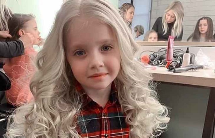Девочка очень красивая и нежная. У нее белокурые волосы, выразительные зеленые глаза, аккуратный носик и милая улыбка.
