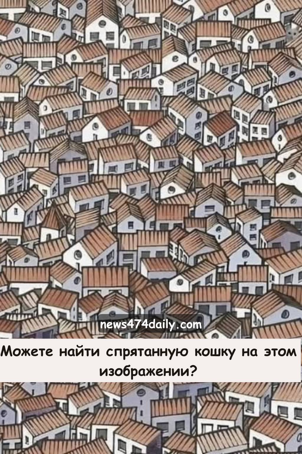 На первый взгляд изображение кажется обычной коллекцией крыш в тихой деревушке. Но где-то на картинке скрывается хитрый кот, идеально сливающийся с фоном. Задача: найдите кошку всего за 8 секунд!