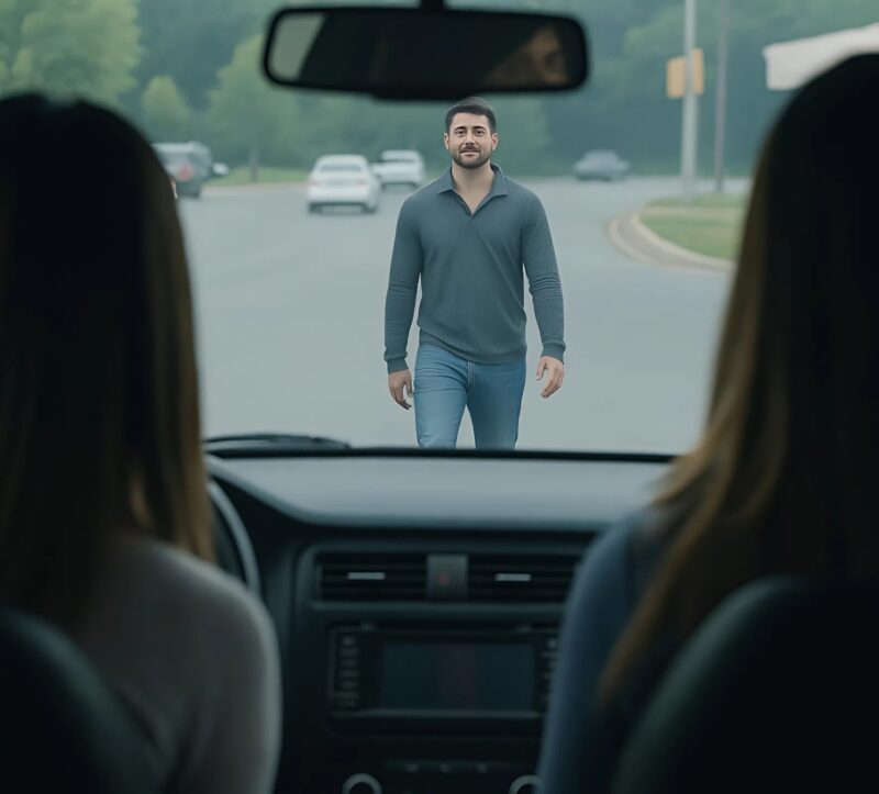 Мгновенно, на автомате, я закрыла все двери и взяла телефон в руки, чтобы, если что, сразу вызвать полицию. Он начал медленно подходить к машине, не отводя взгляда и продолжая эту странную улыбку. Мы оцепенели — никого рядом, пустая дорога, только мы и он.