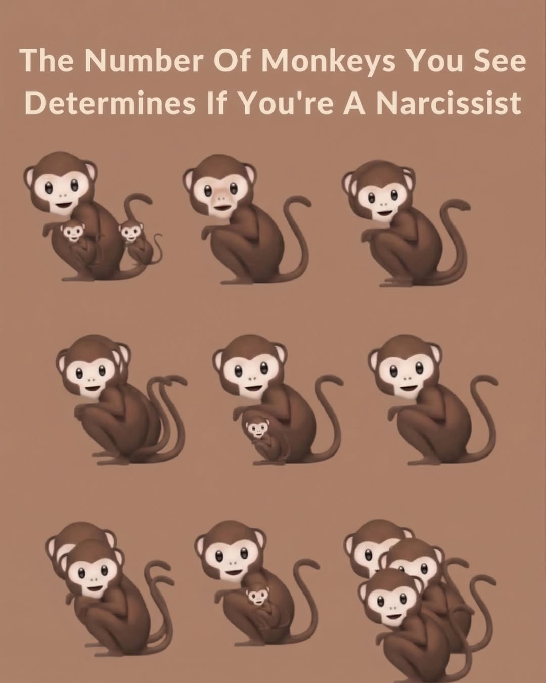 At first glance, the image seems playful—rows of cute cartoon monkeys arranged neatly across a plain background. But the bold caption at the top makes a provocative claim: “The number of monkeys you see determines if you’re a narcissist.”