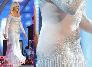 И вот на закрытии «Новой волны 2013» Аллегрова выступила в белом прозрачном платье, сквозь которое был виден живот певицы.