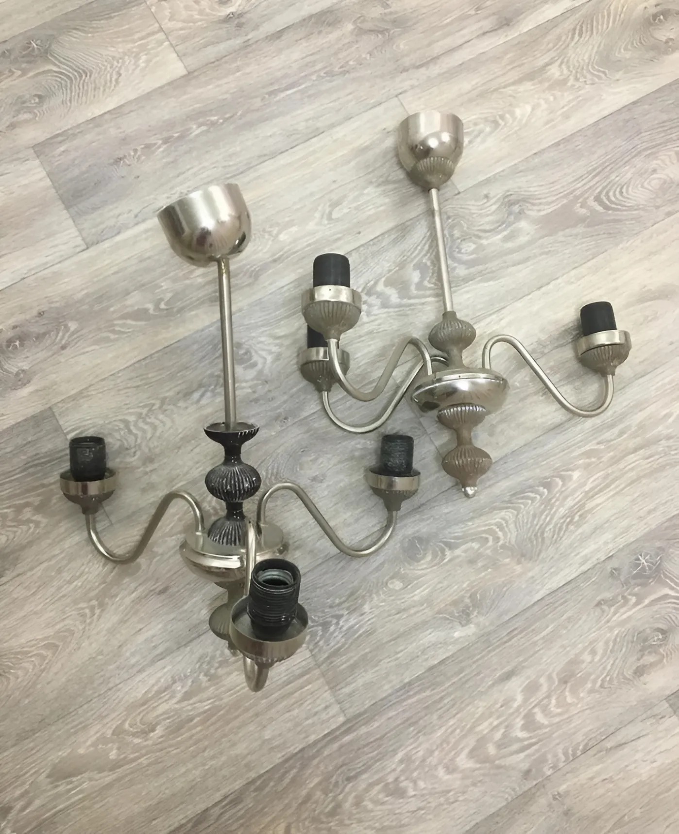 Одна люстра особенно привлекала моё внимание. Её металлический каркас был прочным, с изящными изгибами и цепочкой для подвешивания.