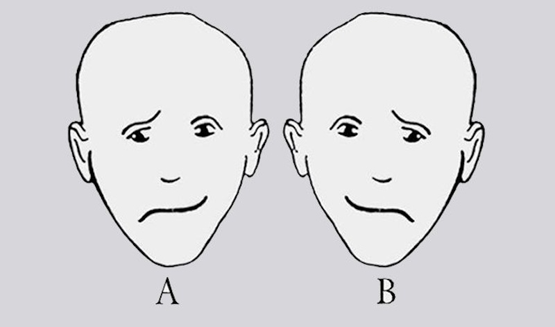Правое или левое? Узнать об этом очень просто: внимательно рассмотрите картинки. На них изображены два лица. Какое из них выглядит более счастливым?