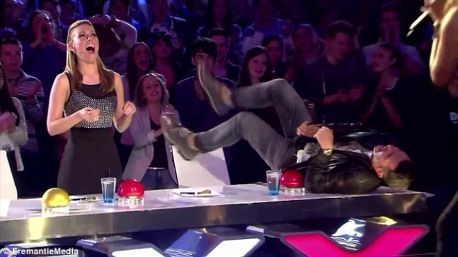 Когда с девушки слеmело плаmье, один из судей упал на стол