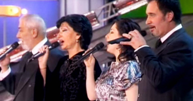 Редко когда можно увидеть Брегвадзе, Меладзе, Кикабидзе, Гвердцители на одной сцене, этот грузинский квартет очень редкий гость, а поэтому значимый. Запись не новая, но это все, что мы смогли найти для вас, надеемся, что вам понравится: