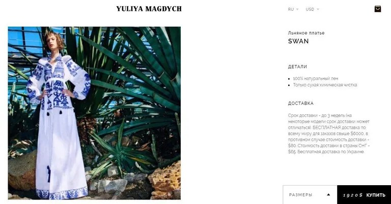 Сейчас на сайте дизайнера можно найти аналогичную вышиванку, однако выполненную в другом цвете.