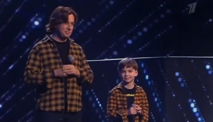 Маленький мальчик держался очень уверено и пел с папой знаменитую песню Эдит Пиаф.
