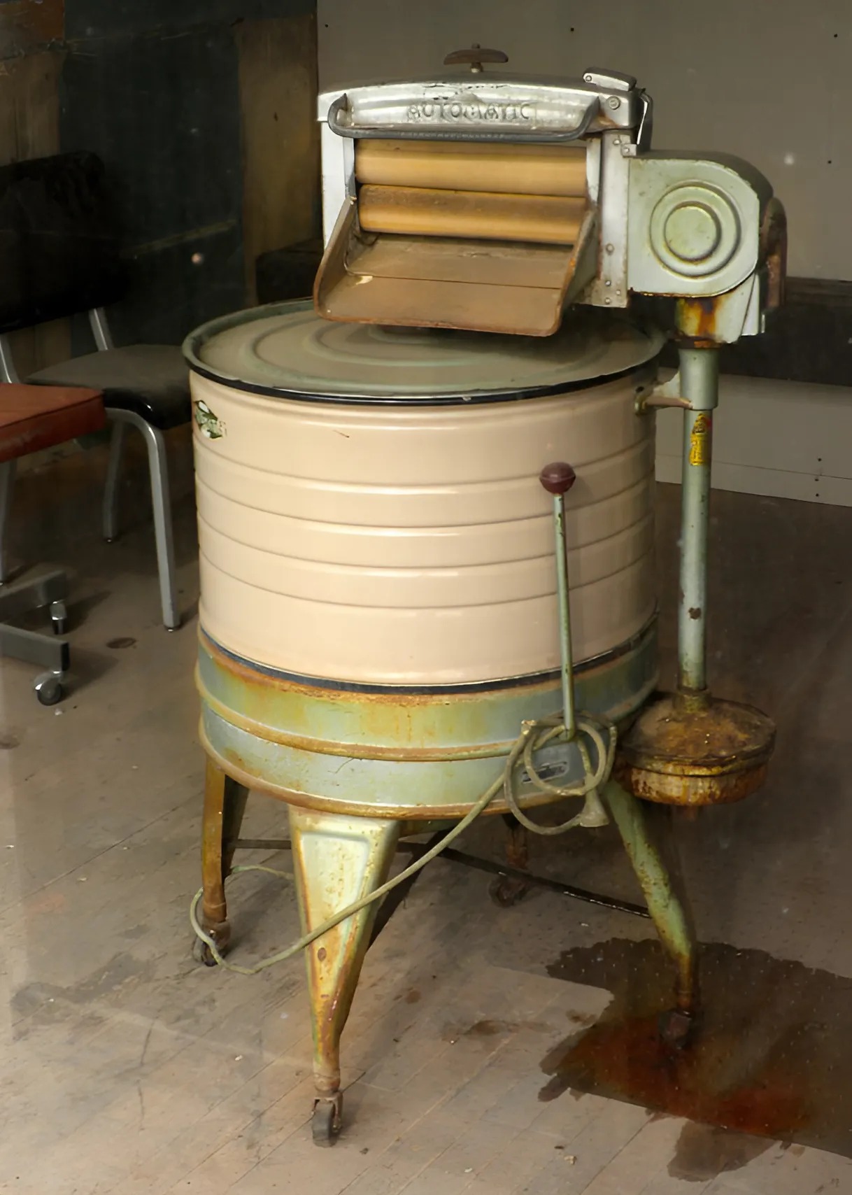 Для тех, кто не знаком с этой «машиной»: это предшественник современных стиральных машин, известный как стиральная машина с отжимом.