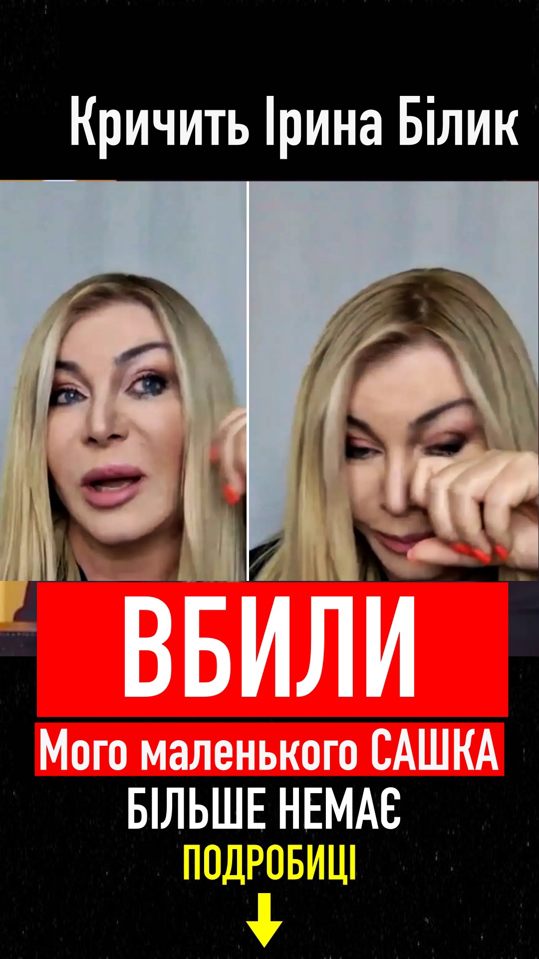 «Не можу сидіти і вдавати, що нічого не сталося… Убито маленьку дитинку, чудового малюка…хресною якого я є… Навіщо все в цьому світі, якщо так просто вбивають людей, діток…в центрі улюбленого міста… Мій маленький Янгол, Сашенька, пробач цим дорослим нелюдам їх жорстокість», — написала Білик.