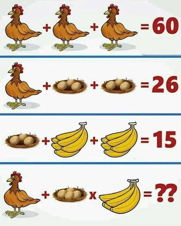 Курица + (Гнездо с 4 яйцами × Связка с 4 бананами) = ?