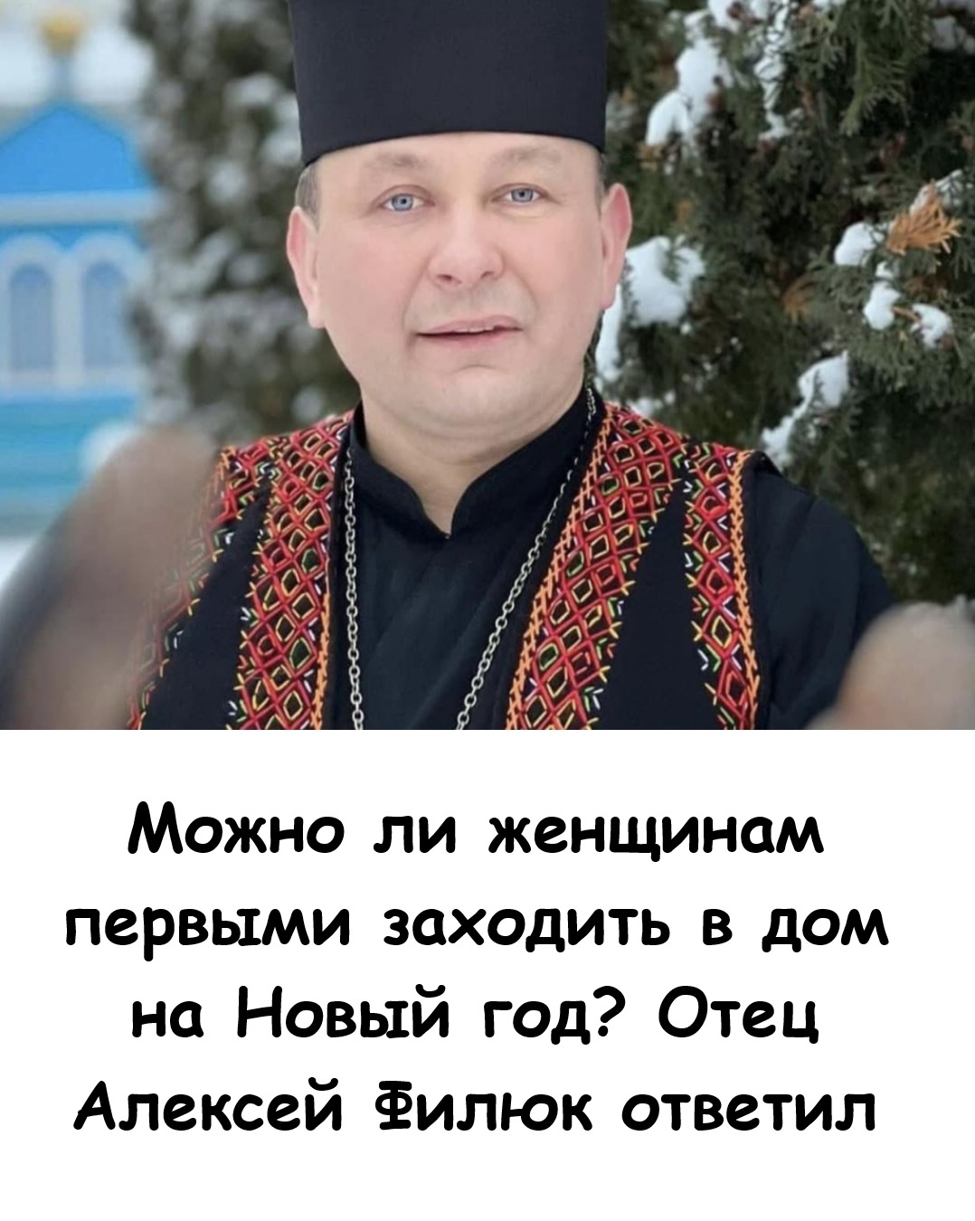 По словам Алексея Филюка, женщинам можно также первыми заходить в дом. Верующие не должны верить в суеверия, вместо этого следует посвятить время молитве в храме. Священник заверил, что если на Новый год первой в дом зайдет девушка, это не принесёт никакого вреда или неудачи.