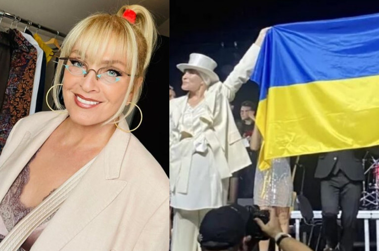 68-летняя звезда советской эстрады Лайма Вайкуле заняла сторону Укpaины и на нескольких своих концертах подряд выходила с сине-желтым флагом.