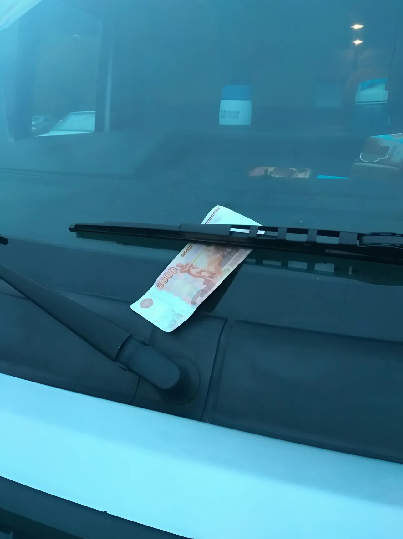 Сегодня оставил свою машину на парковке и ушел по своим делам. Когда вернулся, заметил деньги на лобовом стекле, под дворником. Сперва я подумал, что это оставил какой-то добрый человек 🤔