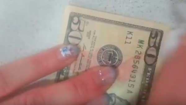 Фальшивомонетничество — рискованное занятие и требует высокого мастерства… И хотя с первого взгляда отличить фальшивку от настоящей купюры достаточно трудно, все тайны когда-нибудь раскрываются. Так произошло и в следующем видео. На вид эта 50-долларовая купюра кажется самой обычной (если не знать, чей портрет там должен быть изображен). Но когда цифру протерли спиртом, произошло настоящее волшебство.
