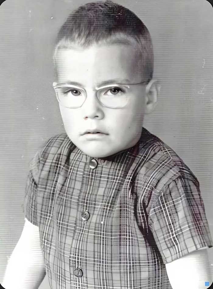 В детстве он был хрупким и часто попадал в неприятности, его часто можно было увидеть в синяках , ведь одноклассники не упускали возможности проявить свою силу