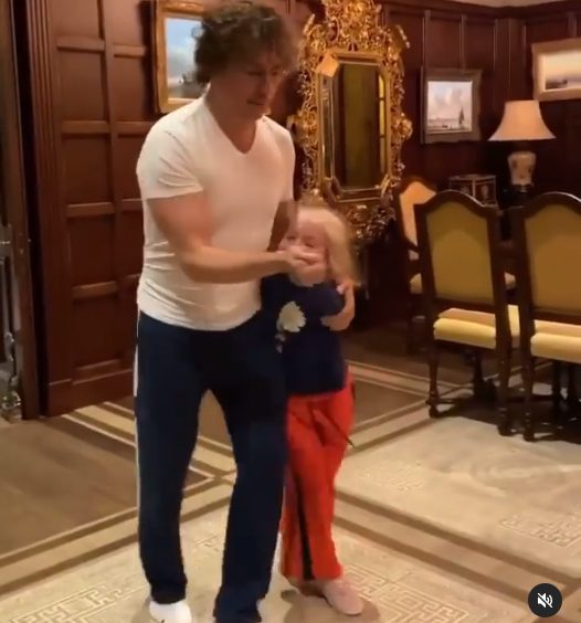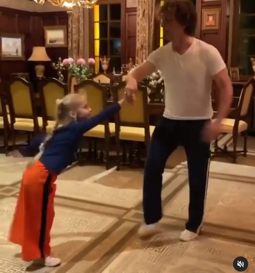 В ролике Макс трогательно танцует с Лизой. Отметим, что танец довольно зажигательный и артистизм и хорошая пластика маленькой Лизы налицо.