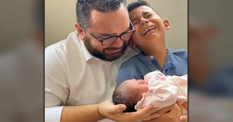 В их семье случилось чудо, у них родилась дочка. На этих снимках и видео вы можете увидеть, как папа и сын обнимают эту малышку и плачут.