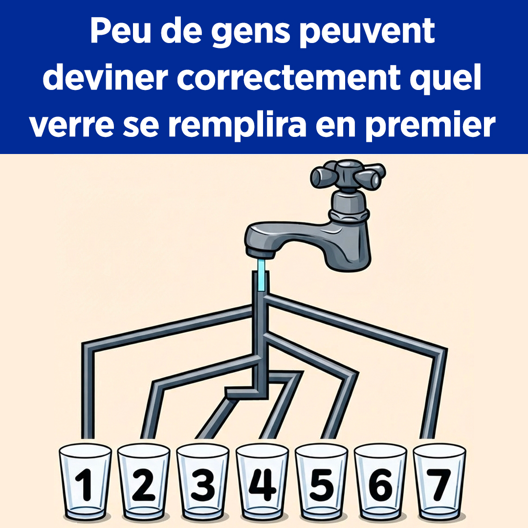 À première vue, l’image paraît évidente : une série de verres reliés par des tuyaux, de l’eau prête à s’écouler… et une question simple : quel verre se remplira en premier ? Facile, non ? Pourtant, ce piège visuel fait trébucher des milliers d’internautes. Et si la vraie difficulté n’était pas dans la logique… mais dans votre impatience ?
