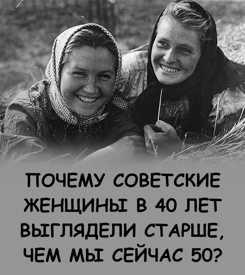 Женщины в советское время в большинстве своем были связаны проблемами выживания: пропитании и заботами о детях и внуках. Тут было не до забот о внешности. Поэтому к 50 годам большинство женщин выглядели, как бабушки.
