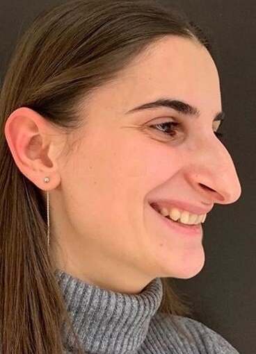 У этой 24-летней девушки была двойная проблема. Нос был крупный, орлиный, выдающийся и с нависающим вниз кончиком. Эти особенности были заметны и в профиль, и в анфас, что доставляло массу комплексов. Пластический хирург провел закрытую ринопластику, которая не оставляет шрамов снаружи. Спинка и кончик носа были выровнены и приведены к стандартной форме.