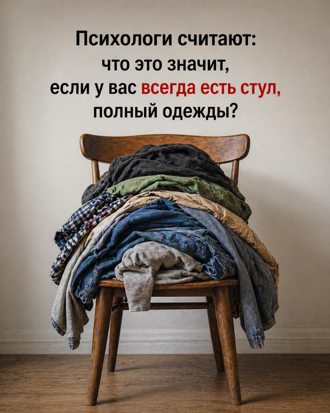 Заходишь в комнату, готовая наконец-то отдохнуть… И взгляд сразу цепляется за него. За тот самый молчаливый стул, который заняли вещи из категории «уже не совсем чистые, но ещё и не откровенно грязные». Это просто лень или скрытый сигнал от твоего сознания? А что, если этот безобидный маленький беспорядок говорит о тебе гораздо больше, чем кажется…