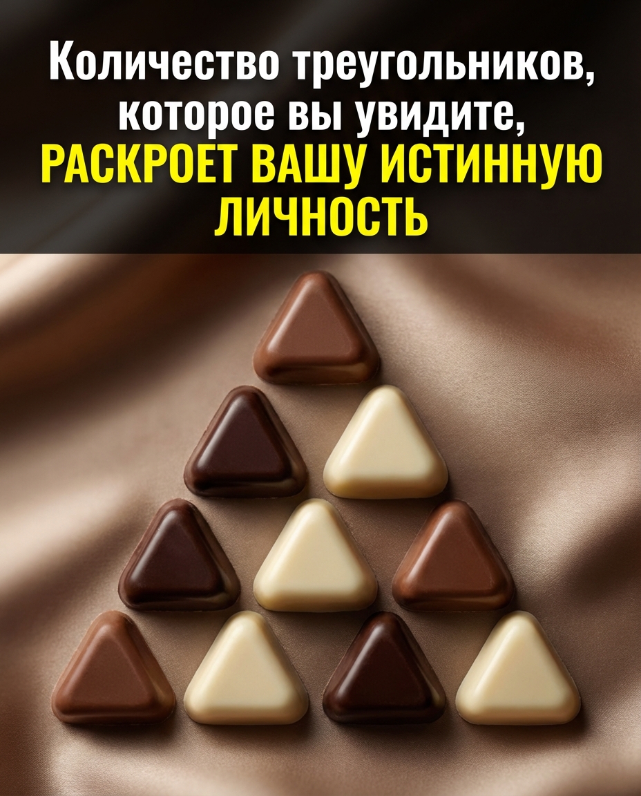 На первый взгляд, это изображение кажется простым: аккуратное расположение треугольников шоколадного цвета, сложенных в более крупную треугольную форму. Но не дайте себя обмануть — эта визуальная головоломка заставляет людей останавливаться, внимательно вглядываться и подвергать сомнению собственное восприятие.