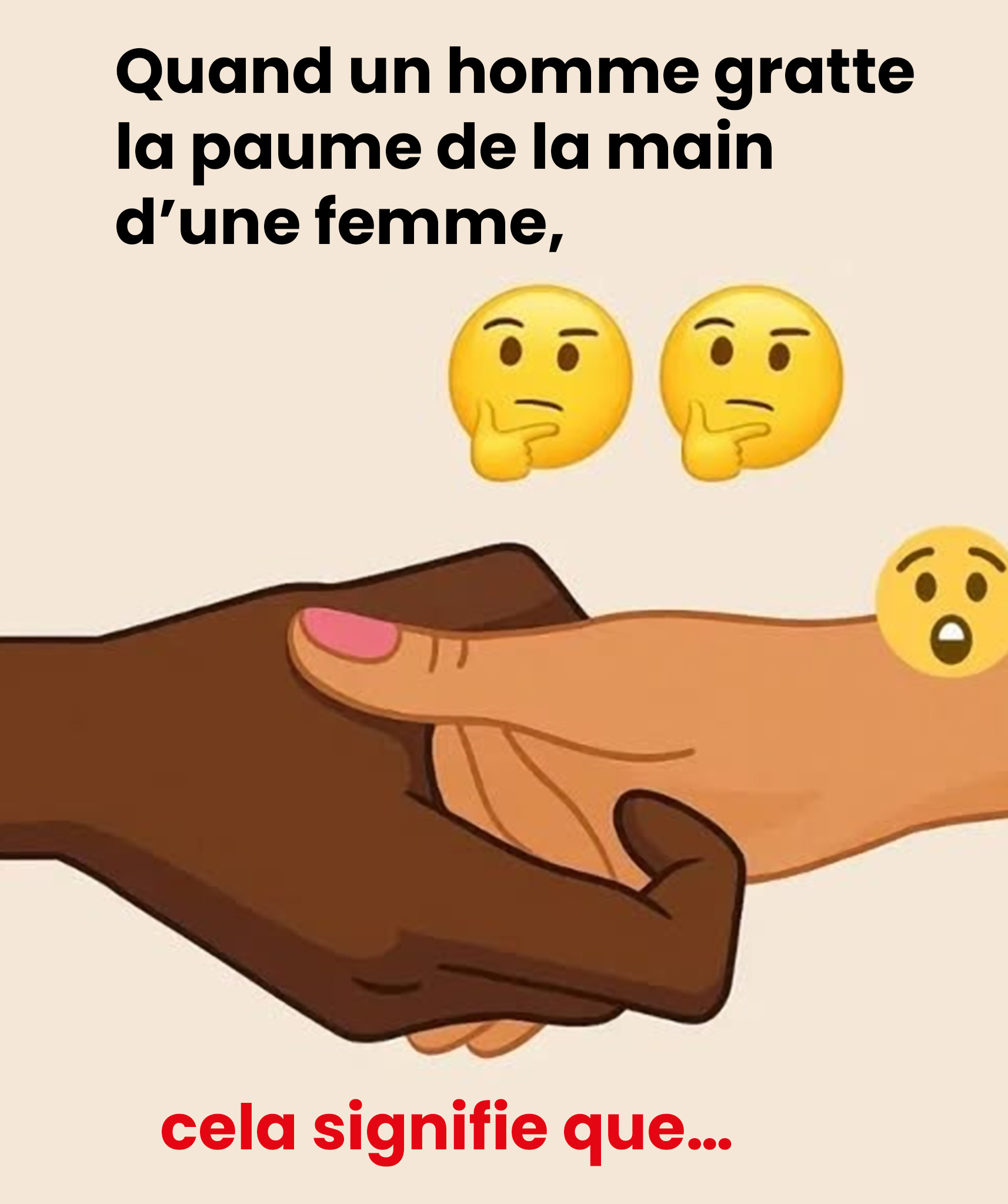 Un contact furtif, presque imperceptible. Une poignée de main qui s’attarde, un doigt qui effleure… et voilà l’esprit qui s’emballe. Que signifie réellement le fait qu’un homme gratte la paume d’une femme ? Ce petit geste, en apparence anodin, intrigue, questionne et laisse parfois place au doute. Et si, derrière ce mouvement discret, se cachait bien plus qu’on ne l’imagine ?