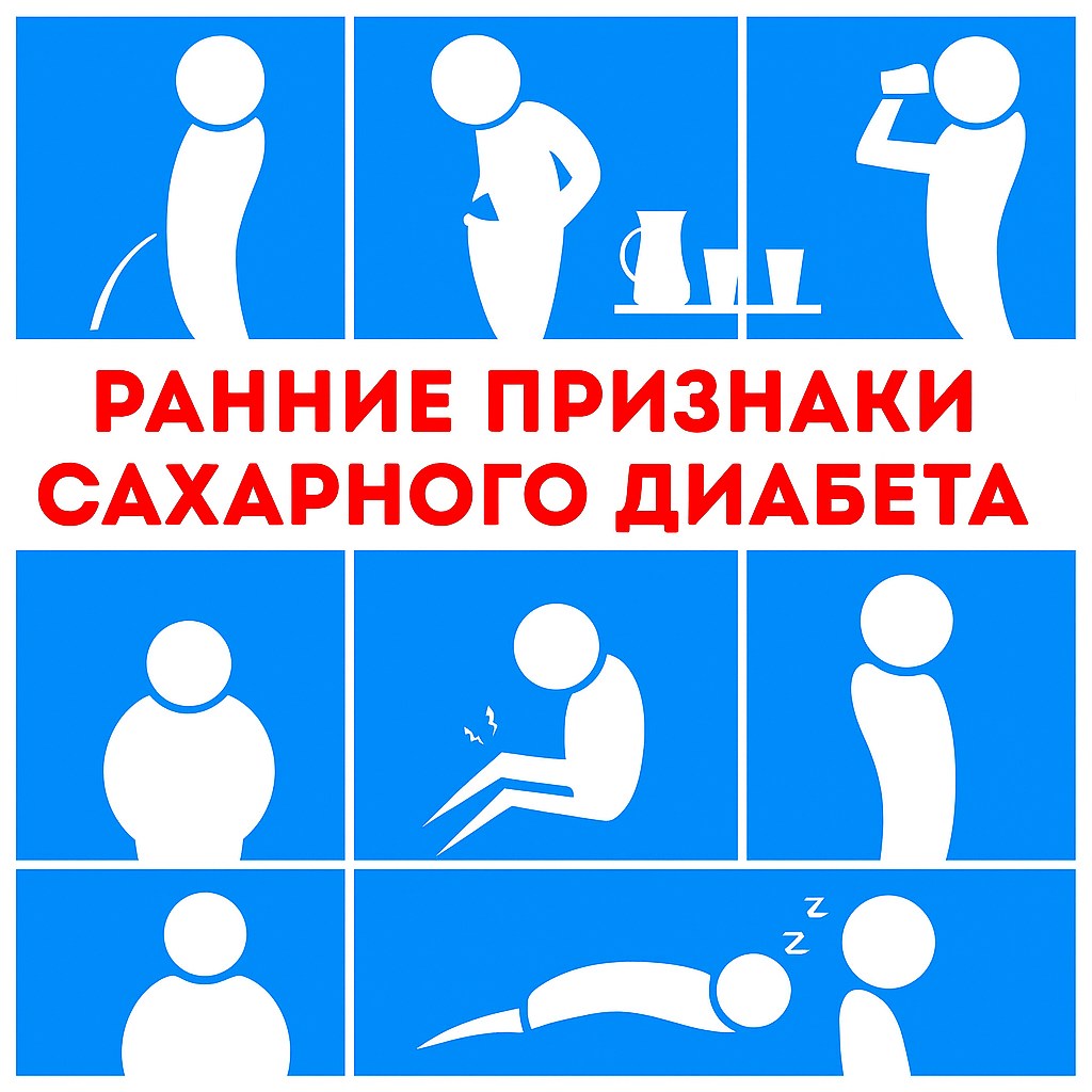 На ранних стадиях СД2 жалобы смазаны, но внимательный человек может их заметить. Эти признаки часто появляются задолго до «красных» цифр в анализах.