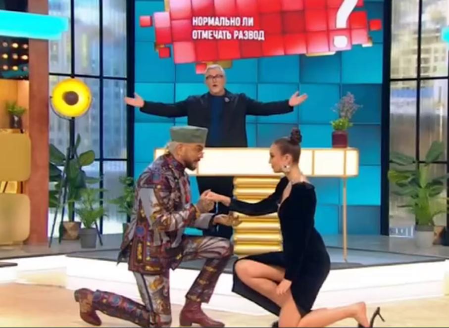 себя воспитанию своих детей — Аллы-Виктории и Мартина. Однако, услышав вопрос ведущей о том, женился бы он на Ольге Бузовой, артист без колебаний ответил утвердительно, чем вызвал волну эмоций в студии. «А мне можно выйти замуж?» — с улыбкой поинтересовалась Бузова. «На тебе — да. Я бы женился», — ответил Киркоров. Ольга не растерялась и встала в центре зала, призвав Филиппа опуститься на одно колено. Затем она задала прямой вопрос — готов ли он стать её мужем. Артист посмотрел ей в глаза и сказал, что согласится, если она