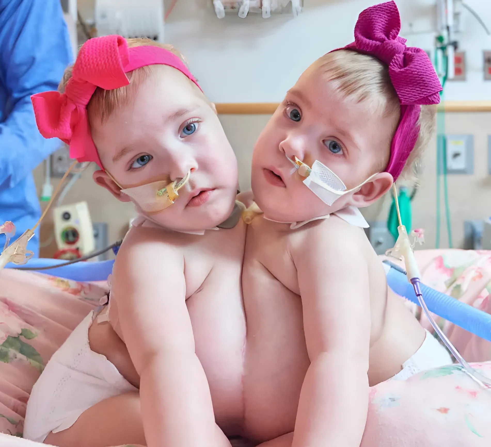 Близнецы провели почти год в отделении интенсивной терапии. Их тела были соединены в области груди и живота: они делили печень, диафрагму, грудную клетку и брюшную стенку.