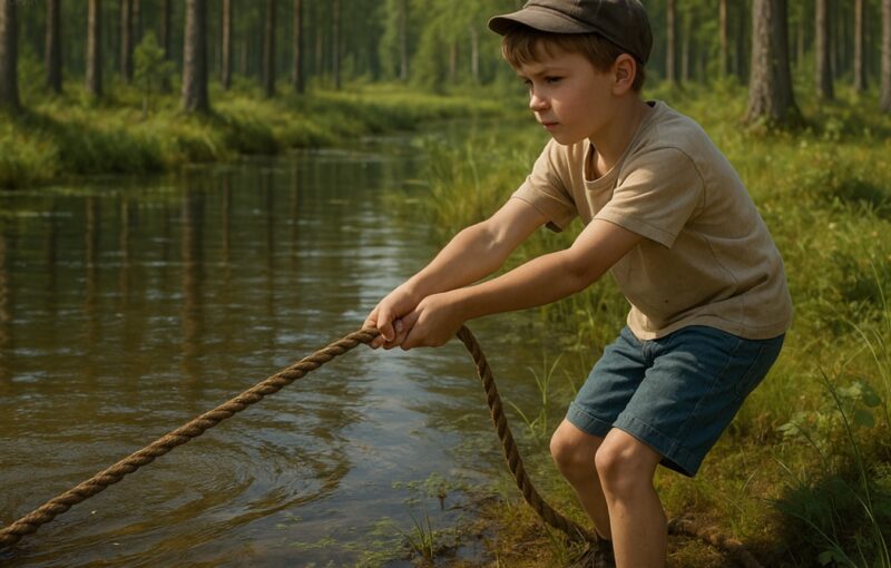 Несмотря на страх, Илья всё же наклонился и ухватился за верёвку. Она была мокрой и холодной. Он потянул — и почувствовал сопротивление. На другом конце явно что-то было.
