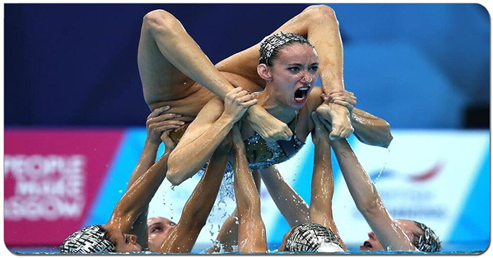 Стоит в интернете появиться какой-то странной и забавной фотографии, как она тут же становится вирусной и разлетается по всем уголкам всемирной паутины. И любители фотошопа, конечно же, мимо не пройдут и добавят снимку ещё больше безумия на радость себе и остальным на смех. Сегодня на повестке дня снимок, опубликованный в базе стоковых фотографий gettyimages.com за авторством ЯнаМакникола, на котором испанские синхронистки поднимают над водой одну из спортсменок.