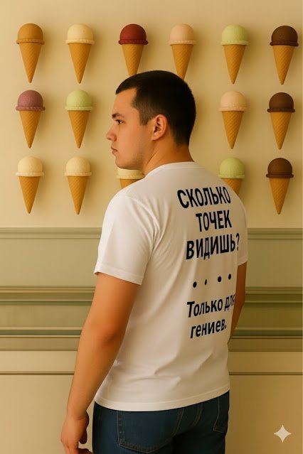 Иногда самые простые вещи способны пробудить в нас глубокие размышления. Всего лишь несколько точек на футболке — и мы начинаем останавливать внимание, считать их, а затем задумываться: не упускаем ли мы что-то важное? Вопрос «Сколько точек ты видишь?» становится небольшим вызовом для нашего внимания, восприятия и способности мыслить нестандартно.