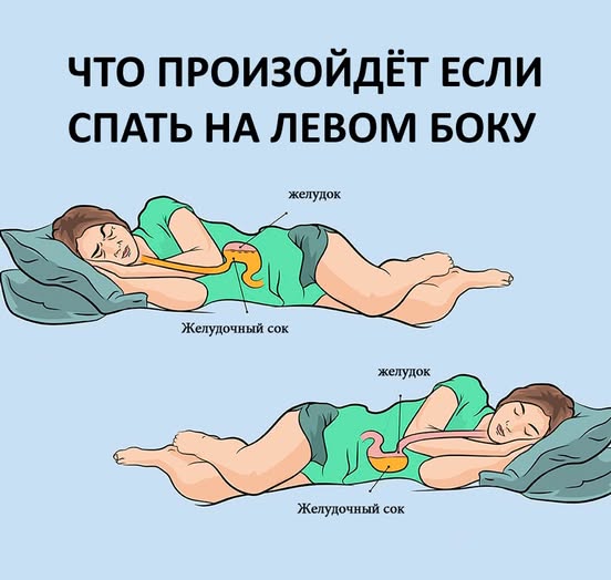 Когда мы спим на левом боку, желудок находится ниже пищевода, что препятствует возврату кислоты обратно в пищевод. Это уменьшает вероятность возникновения изжоги и других симптомов кислотного рефлюкса.