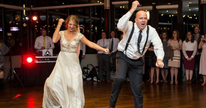 Сначала они исполняли классический танец отца и дочери, но взгляните что произошло через минуту! Вдруг музыка сменилась, папа с дочкой одели солнцезащитные очки, и началось настоящее шоу! Мужчина отжигает! Эта парочка просто поражает своим позитивом и жизнерадостностью. Мне кажется, что это гораздо круче традиционных сентиментальных танцев. Возможно, молодожёнам стоит взять это на заметку. А чем вам запомнилась ваша свадьба? Расскажите об этом в комментарии.