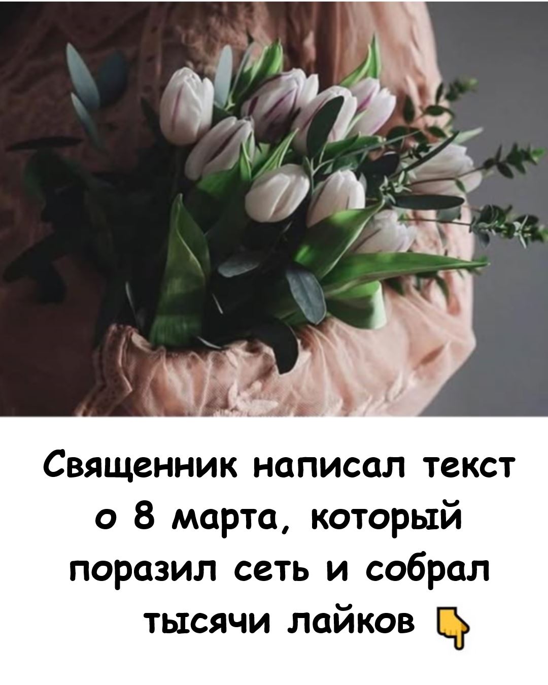 Тернопольский священник, протоиерей Евгений Заплетнюк по случаю праздника 8 Марта, Женского дня, написал впечатляющий текст, который заставит каждого мужчину посмотреть на своё поведение свежими глазами. И научит по-настоящему ценить самых дорогих людей в жизни.
