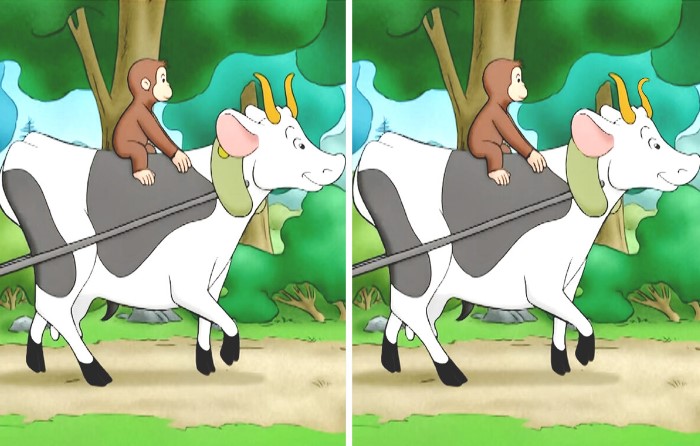 Тест на внимательность: найдите всего 3 отличия на картинке с обезьянкой и коровой за 30 секунд.