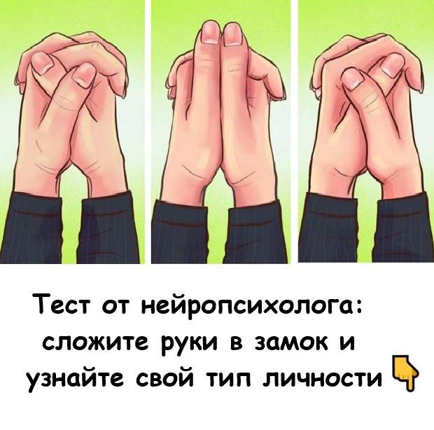 Пройдите этот простой тест: сложите руки в привычный «замок» — так, как вы обычно делаете это, не задумываясь. Обратите внимание, какой большой палец оказался сверху — правый или левый? Или, может быть, оба большие пальца расположены симметрично?