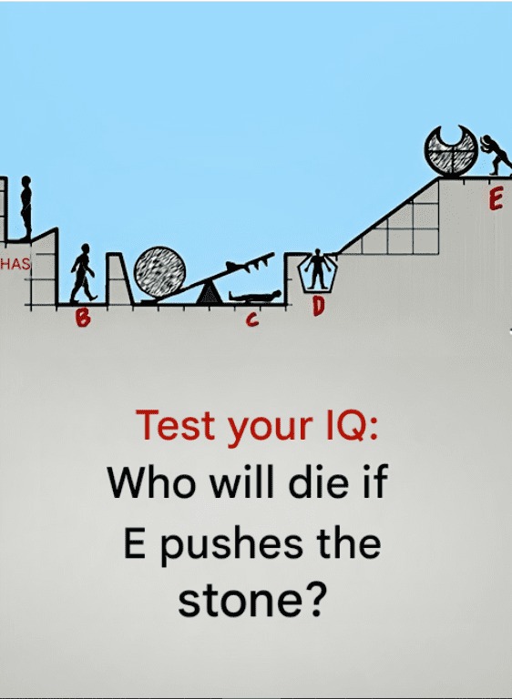 Today’s puzzle requires a thorough analysis and a basic understanding of physics. However, even if you are not an expert in physics, a good observational skill might be enough to solve the puzzle. The puzzle image shows five people, labeled A through E. E is about to push a rock down a slope. The rock is spaced far enough apart for a head to fit inside.