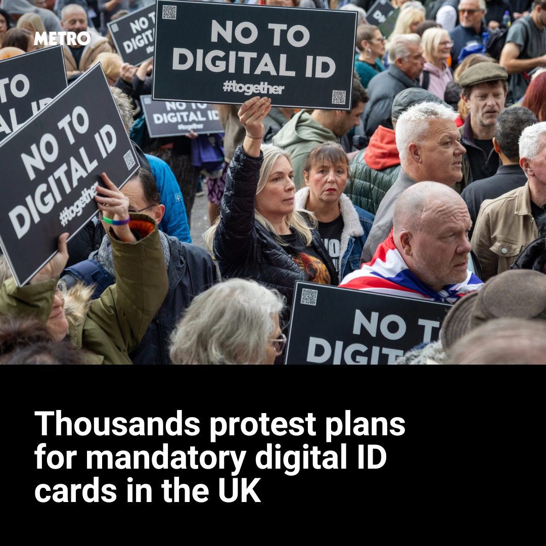 They claimed that ‘it is marketed as safety but built for control’, and provided images for protesters including slogans such as ‘Britain doesn’t do “Papers, Please”.’