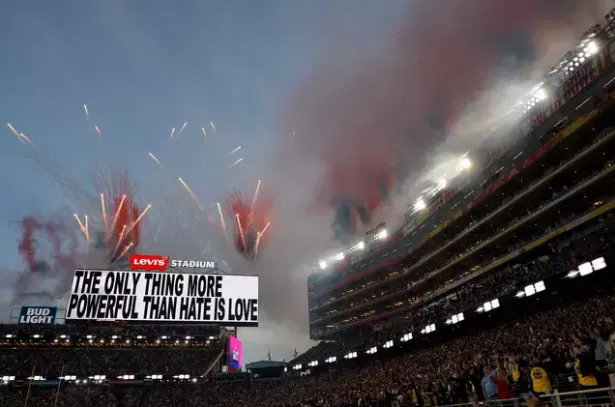 Yet some of the less subtle messaging in the Latin-infused halftime show likely enraged the president further, with a billboard pointedly reading ‘the only thing more powerful than hate is love’ as the set came to close.